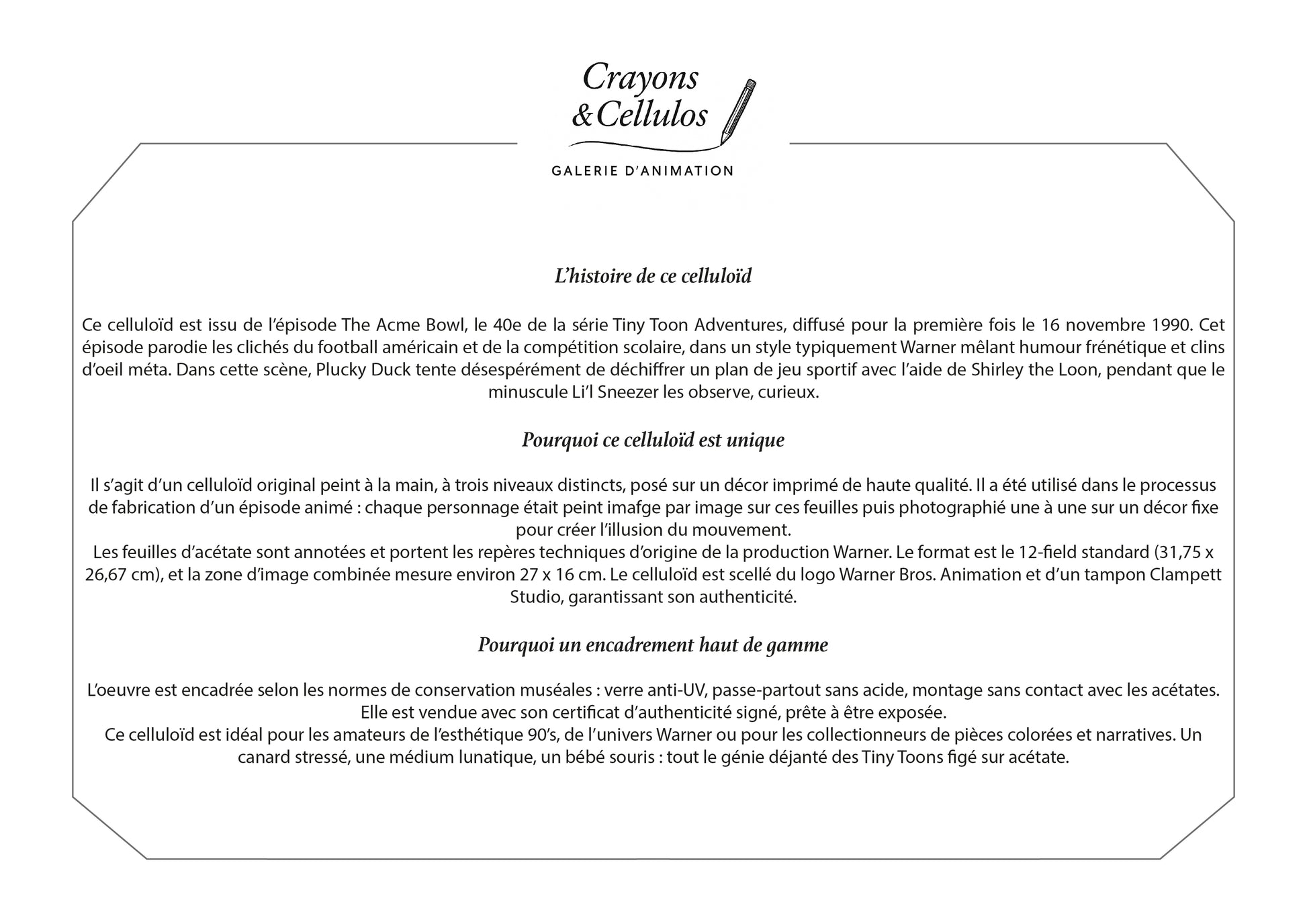 Personnages représentés : Plucky Duck, Shirley the Loon et Li’l Sneezer